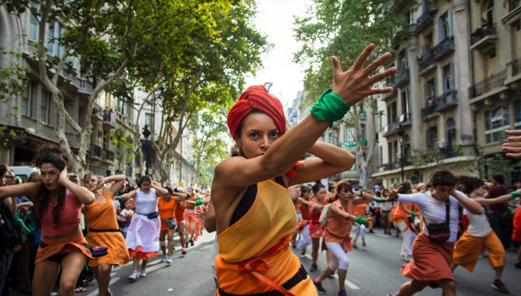 Las calles de la Ciudad de Buenos Aires se tiñeron de cuerpos libres el viernes por la tarde. La concentración comenzó alrededor de las 15 hs en la Plaza Congreso, acompañada de un show de tango feminista, feria de emprendedoris, murgas y talleres.