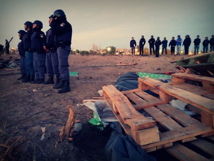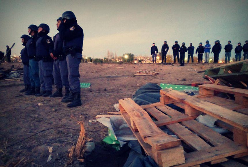 La policía provincial desalojó a un grupo de familias que ocupaban terrenos sobre la zona conocida como «Parque Industrial», en la capital neuquina. A fuerza de topadoras, gases, balas de goma, bastonazos y detenciones que se desataron en la madrugada del martes los efectivos terminaron con el asentamiento de 81 familias sin techo. Una vez concluído el desalojo la represión continuó en los barrios cercanos. El intendente «pechi» Quiroga (CAMBIEMOS) no realizó declaraciones. A la tarde, la iglesia intentó articular una mesa de diálogo pero ningún funcionario del gobierno local asistió. “Los vecinos están robando terrenos por eso pedimos la liberación de ese predio y no vamos a hacer declaraciones«, afirmó ayer el Ministro de Gobierno. Hoy paran docentes y estatales de toda la provincia.