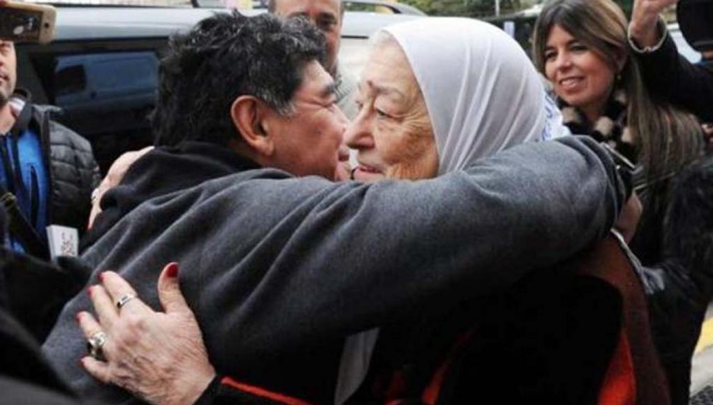 Diego Armando Maradona le envió un mensaje de audio a Hebe de Bonafini: «Todo mi apoyo, todo el apoyo sincero de un peronista, de un hombre que quiere que la gente coma, que la gente sea feliz. Por eso le mando un beso grande a Hebe de Bonafini».