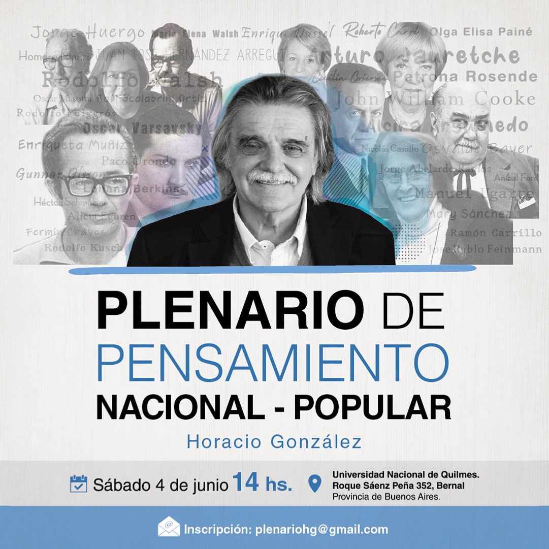 El analista político Daniel Rosso invitó a participar el próximo sábado 4 de junio del Plenario del Pensamiento Nacional y Popular Horacio González en la Universidad de Quilmes, en memoria del gran pensador nacional, reflexionó sobre la situación actual del Frente de Todos y lo llamó «a recobrar la creatividad, la audacia y a afianzar la propia identidad, para recuperar el campo de decible». Y subrayó que «vemos cómo la derecha se anima a decir que va a derogar las indemnizaciones, mientras desde el campo nacional y popular se va reduciendo lo que es posible decir, debemos recuperar la agenda y la palabra».