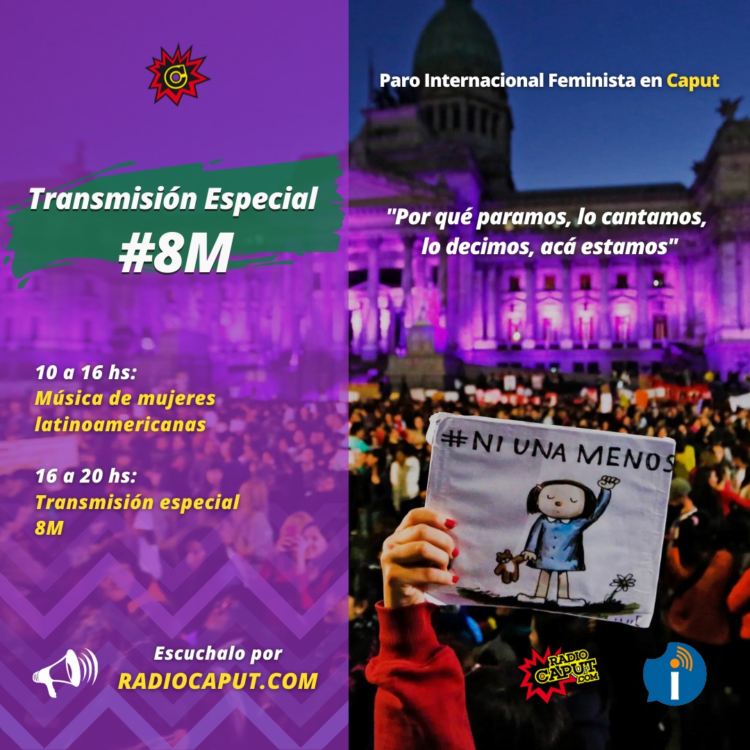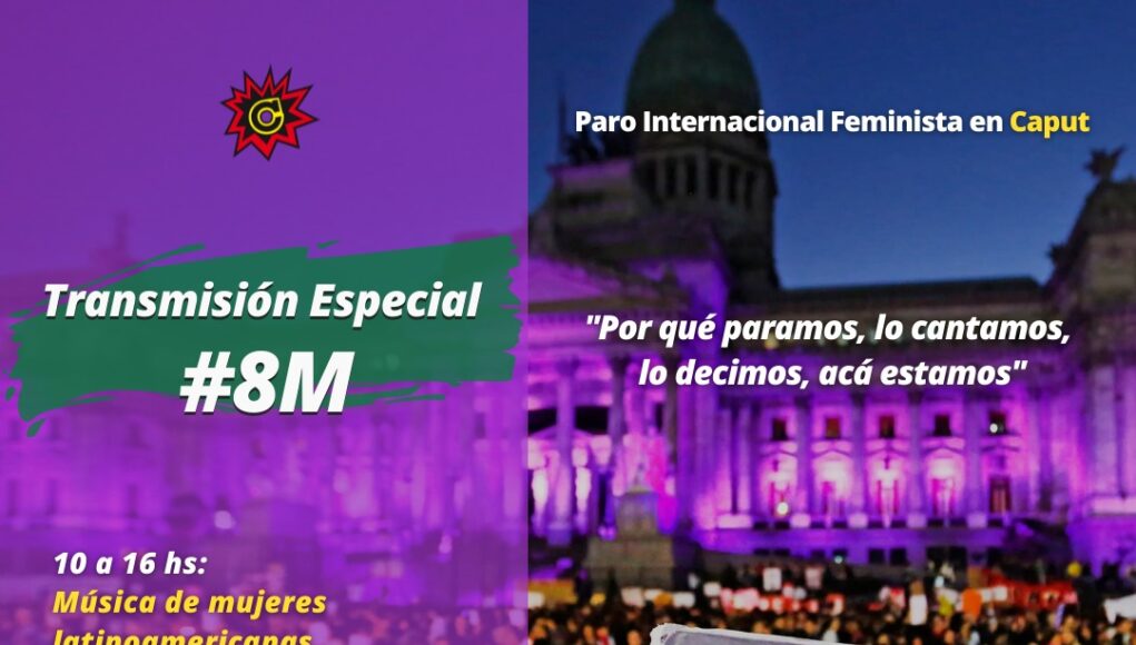 En el marco del Día Internacional de la Mujer, desde Radiocaput se realiza una transmisión con la consigna «Por qué paramos, lo cantamos, lo decimos, acá estamos». La jornada estará atravesada por la movilización Internacional de Mujeres, convocada a las 16 hs en Avenida de Mayo y 9 de Julio.