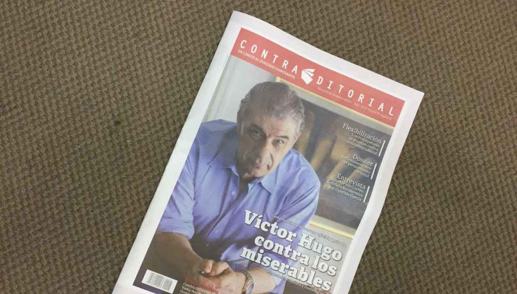 Ya está en los kioskos una nueva edición de la revista Contraeditorial. La nota de tapa, escrita por Roberto Caballero y Gustavo Cirelli, es: «Víctor Hugo contra los miserables: Cómo funciona la censura oficial y privada«.